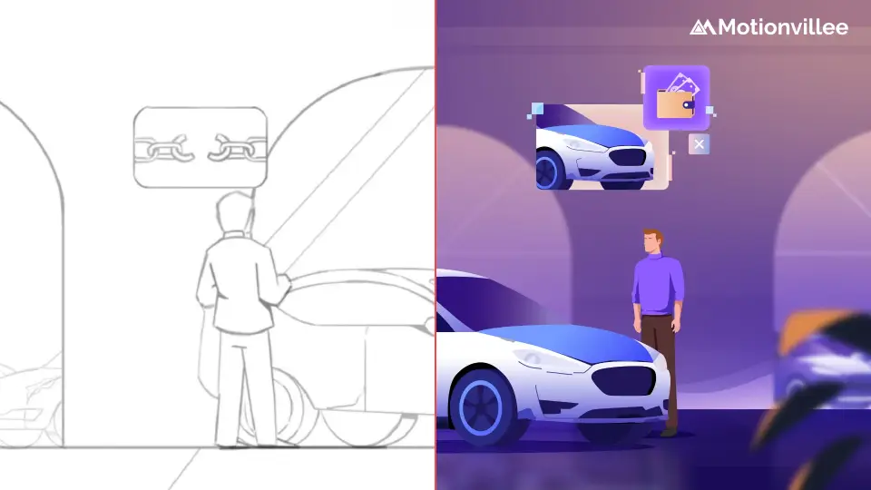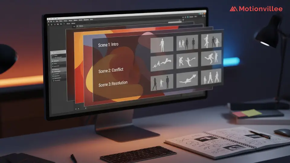 At Motionvillee, this stage bridges the gap between storyboards and animation. It is where visual strategy, color psychology, and composition come together to shape the brand’s story in motion for SaaS video production and explainer video production projects.